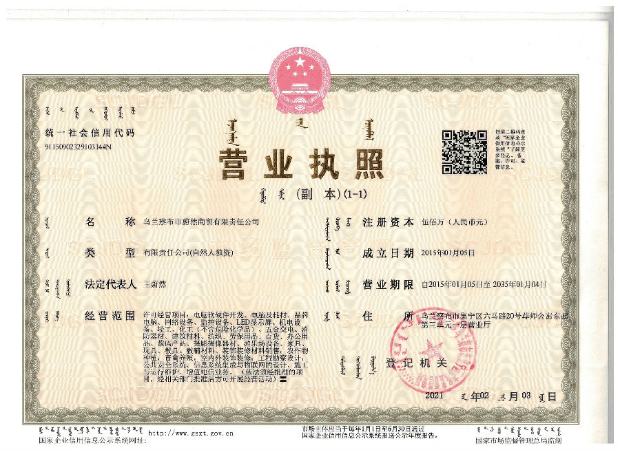 地址:內(nèi)蒙古烏蘭察布市集寧區(qū)民建路83號宏大公司 綜合樓1層5號營業(yè)廳